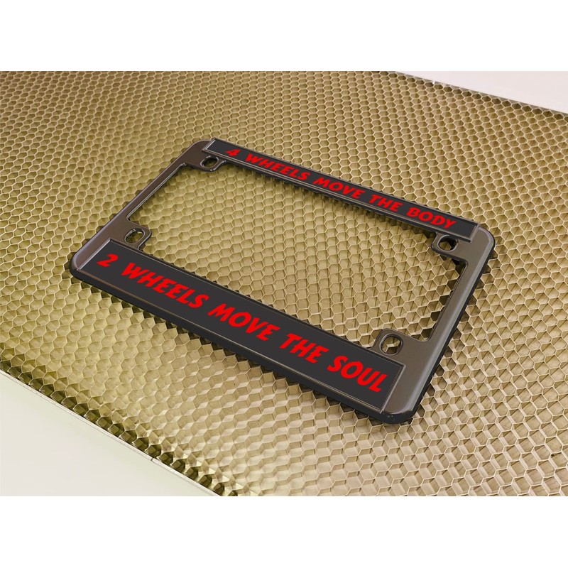 - TECHNOLOGY - Very Durable, High Quality product. Please note: this isn’t a cheap printed sticker, the message of your choice will be laser engraved into UV stable and Weather Resistant outdoor-grade American-made acrylic and then bonded to the frame with an exterior grade oil-resistant 3M adhesive. Your custom frame will not fade, rust or tarnish.