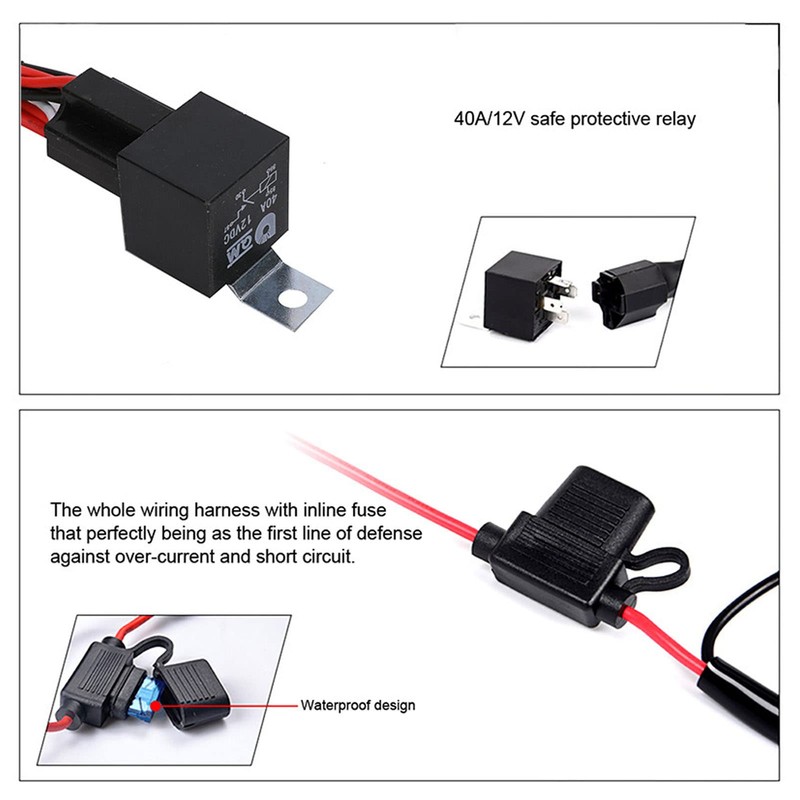- SAFE PROTECTION - The light wiring harness kit is equipped with relay and high current fuses to prevent over-current and short circuits, making it safer and more reliable.