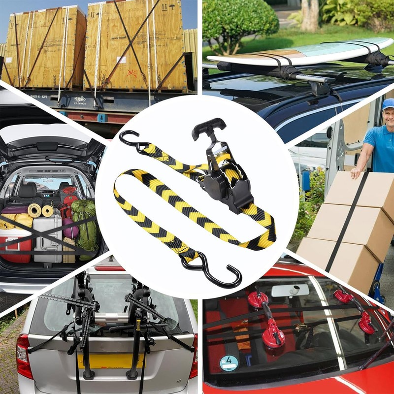 - Easy to Use: Featuring an intuitive a-click tightening function and self-retracting design, the tie down straps optimize transportation efficiency, allowing users to complete securing tasks swiftly without unnecessary labor or hassle