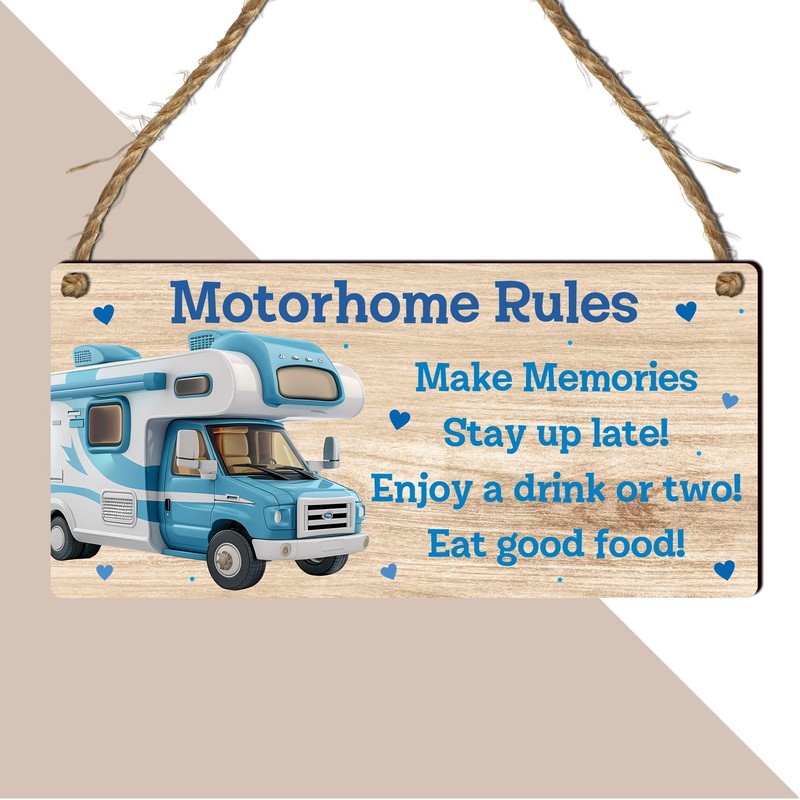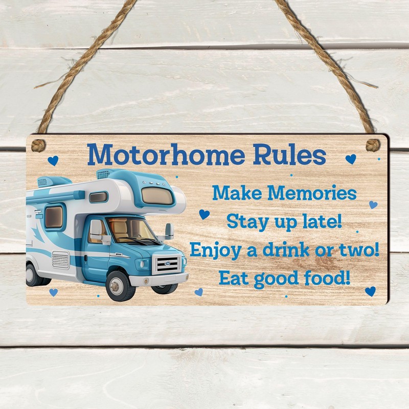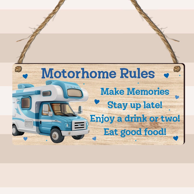 - 🚐 Celebrate Motorhome Life: This charming plaque captures the essence of motorhome living with playful rules that remind you to enjoy every moment on the road. It's the perfect addition to your RV, campervan, or motorhome decor.