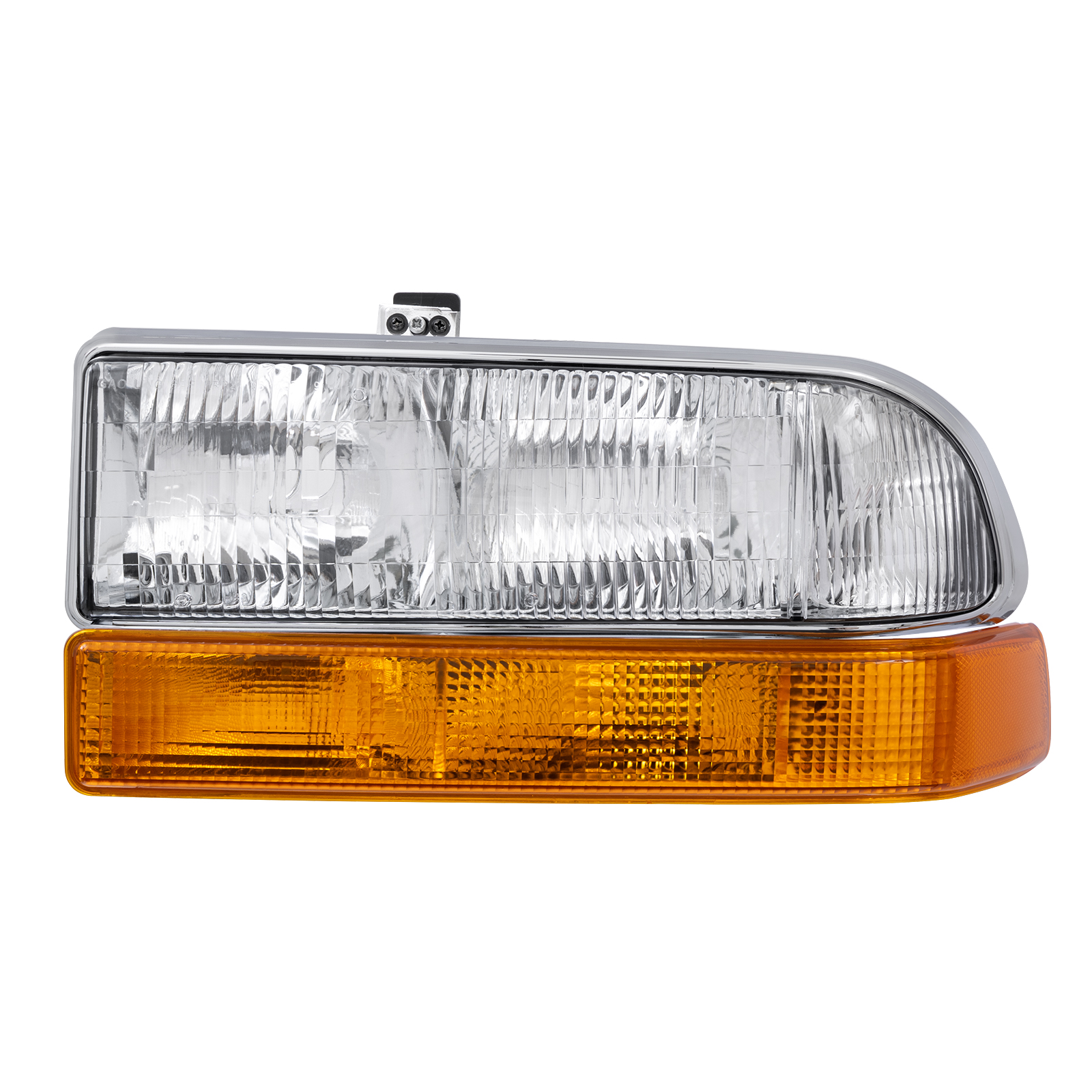 MOTORSPORTPLUS Pair Chrome Amber Headlights Assembly Halogen For 1998-2004 Chevy S10 Blazer