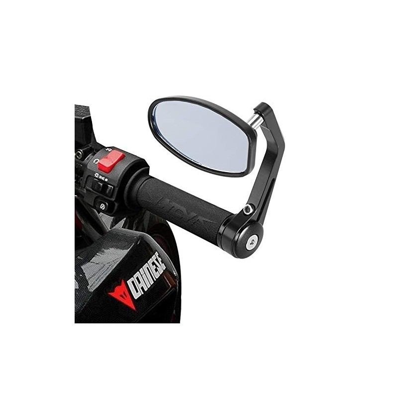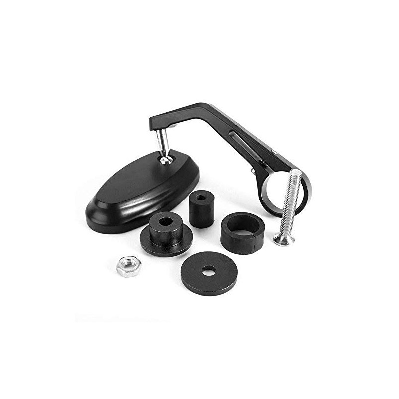 Upgrade your ride with these Black Reverse Retro Handlebar End View Mirrors, crafted for both style and safety. Each mirror features a durable aluminum body with a premium black finish, delivering a timeless look that complements any motorcycle. The 4 x 2 inch (105mm x 56mm) mirrors provide a broad, distortion-free view of the road behind, enhancing your awareness and confidence while riding.Designed to fit 7/8" (22mm) outer diameter handlebars and clip-ons, these mirrors are compatible with a wide range of motorcycles, scooters, and e-bikes. Installation is quick and hassle-free thanks to the included rubber expansion collars for inside-the-bar mounting and secure clamps for direct handlebar attachment. No adapter is required if you have at least 12mm of exposed handlebar end.Sold as a pair, these mirrors are ideal for riders seeking a reliable, vibration-resistant solution that combines classic retro aesthetics with modern functionality. Whether you're customizing a cafe racer or upgrading your daily commuter, these bar end mirrors are the perfect finishing touch for your handlebars.Versatile Use: Ideal for cafe racers, cruisers, naked bikes, and custom builds seeking a classic yet functional upgrade