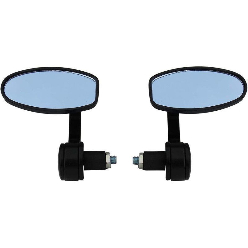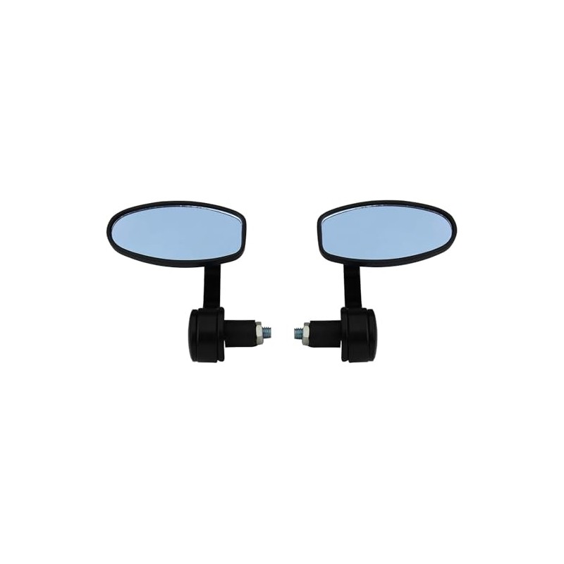 Upgrade your ride with these Black Reverse Retro Handlebar End View Mirrors, crafted for both style and safety. Each mirror features a durable aluminum body with a premium black finish, delivering a timeless look that complements any motorcycle. The 4 x 2 inch (105mm x 56mm) mirrors provide a broad, distortion-free view of the road behind, enhancing your awareness and confidence while riding.Designed to fit 7/8" (22mm) outer diameter handlebars and clip-ons, these mirrors are compatible with a wide range of motorcycles, scooters, and e-bikes. Installation is quick and hassle-free thanks to the included rubber expansion collars for inside-the-bar mounting and secure clamps for direct handlebar attachment. No adapter is required if you have at least 12mm of exposed handlebar end.Sold as a pair, these mirrors are ideal for riders seeking a reliable, vibration-resistant solution that combines classic retro aesthetics with modern functionality. Whether you're customizing a cafe racer or upgrading your daily commuter, these bar end mirrors are the perfect finishing touch for your handlebars.Versatile Use: Ideal for cafe racers, cruisers, naked bikes, and custom builds seeking a classic yet functional upgrade