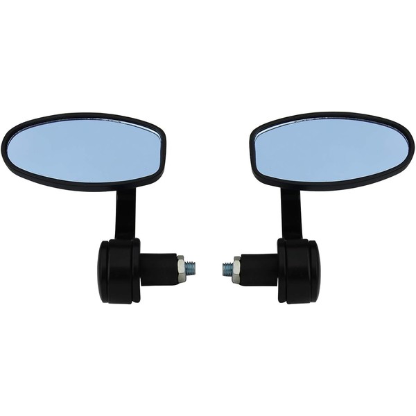 Upgrade your ride with these Black Reverse Retro Handlebar End View Mirrors, crafted for both style and safety. Each mirror features a durable aluminum body with a premium black finish, delivering a timeless look that complements any motorcycle. The 4 x 2 inch (105mm x 56mm) mirrors provide a broad, distortion-free view of the road behind, enhancing your awareness and confidence while riding.Designed to fit 7/8" (22mm) outer diameter handlebars and clip-ons, these mirrors are compatible with a wide range of motorcycles, scooters, and e-bikes. Installation is quick and hassle-free thanks to the included rubber expansion collars for inside-the-bar mounting and secure clamps for direct handlebar attachment. No adapter is required if you have at least 12mm of exposed handlebar end.Sold as a pair, these mirrors are ideal for riders seeking a reliable, vibration-resistant solution that combines classic retro aesthetics with modern functionality. Whether you're customizing a cafe racer or upgrading your daily commuter, these bar end mirrors are the perfect finishing touch for your handlebars.Versatile Use: Ideal for cafe racers, cruisers, naked bikes, and custom builds seeking a classic yet functional upgrade