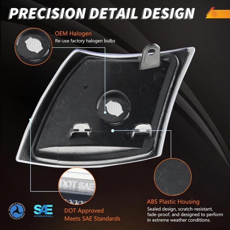 - [Easy Installation] MOTRUM Side Marker Corner Lights Housing 1:1 OEM replacement and high compatibility make it easy to install without any hassle. It replaces the old OEM halogen housing easily, giving you a recognizable appearance, improving your car's overall style.