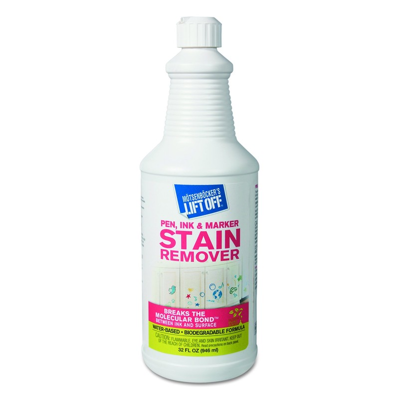 - INK REMOVAL MADE EASY: Lift Off’s patented, water-based formula that is biodegradable and safely removes pen, ink, permanent marker, dyes, nail polish, and more. Lift Off breaks the bond between stain and surface without causing damage.