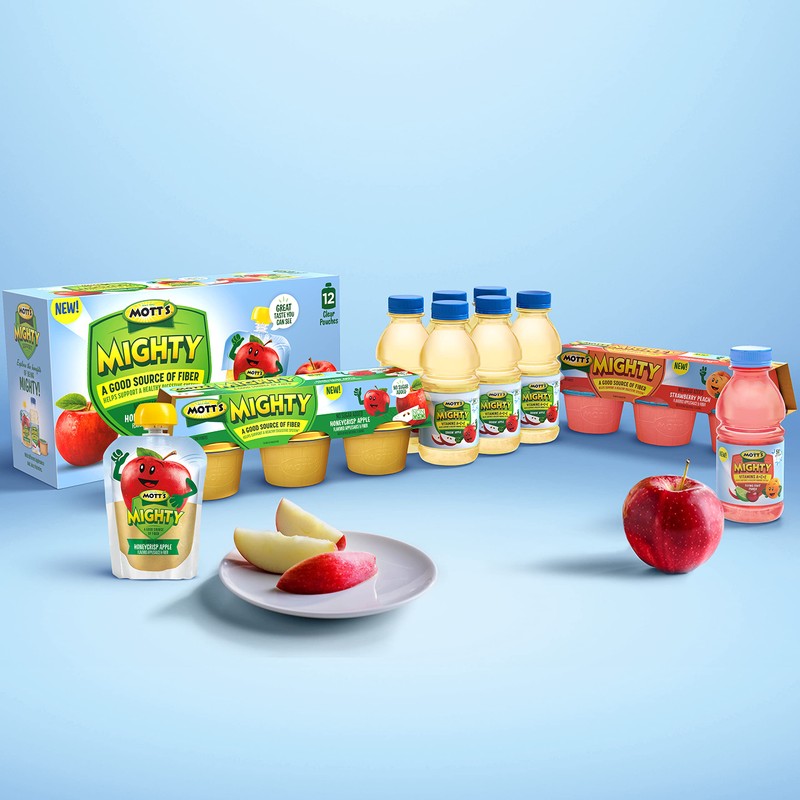 Mott’s understands that kids' bodies require a lot to be at their best. That’s why Mott’s Mighty products offer added benefits to help support kids as they grow. Our no sugar added Mott’s Mighty Applesauce & Fiber Blends have a good source of fiber to help support a healthy digestive system and Mott’s Mighty Juice Drinks have 50% less sugar than 100% juice, plus added vitamins A, C and E to help support a healthy immune system. So, whether you’re looking for a delicious snack or beverage, Mott’s Mighty has the delicious taste you expect from Mott’s, all with no artificial flavors, colors or sweeteners. Apples have always nourished us, inspired us, and provided for us. Mott's provides the nutrition and taste of real fruit that families have trusted since 1842, when our founder - Samuel R. Mott's - began growing and packaging apples in New York. In the years since, Mott’s commitment to apple excellence and high- quality products has continued to provide healthy, delicious juices and snacks. Treat your family to the mighty good tasting, and mighty good for you, Mott’s Mighty Applesauce & Fiber Blends in Honeycrisp Apple, Strawberry Peach and Pineapple Banana flavors, and Mott’s Mighty Juice Drinks in Soarin’ Apple, Flying Fruit Punch and Incredible Tropical flavors.