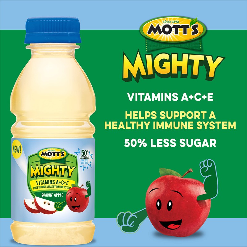 • MADE FOR MIGHTY KIDS: Mott’s Mighty Juice Drinks combine 100% fruit juice with purified water, natural flavors, and Vitamins A, C and E to help support a healthy immune system