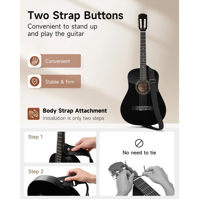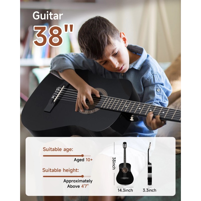 Moukey 38" Acoustic Guitar Dreadnought Beginner Bundle With Strap Bag Tuner Pick