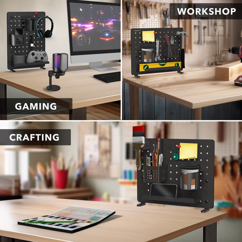 Upgrade your work or creative space with the Mount-It! Clamp-On Pegboard Organizer, designed specifically to streamline your workflow and enhance your productivity. Whether you're working remotely, gaming, crafting, or managing a professional workspace, this adaptable organizer effortlessly declutters your desk by providing tailored vertical or horizontal storage.