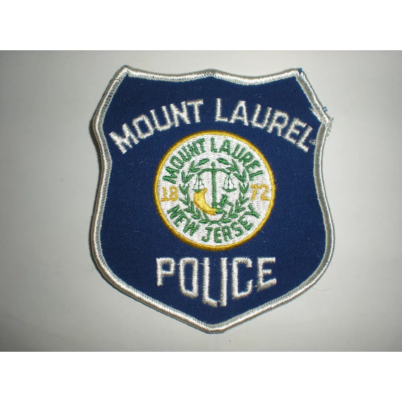 MOUNT LAUREL, NEW JERSEY POLICE DEPARTMENT PATCH. EMBROIDERED ON TWILL. PATCH MEASURES 4.5" TALL.