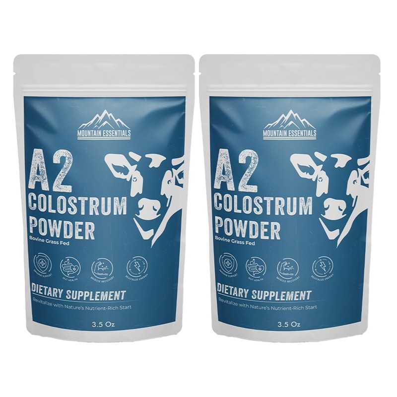 MOUNTAIN ESSENTIALS A2 Colostrum Powder 3.5 Oz Bovine Grass Fed Above 40% IGG Gluten Free, Non GMO 1 Year Shelf Life 50 Servings Pack of 2