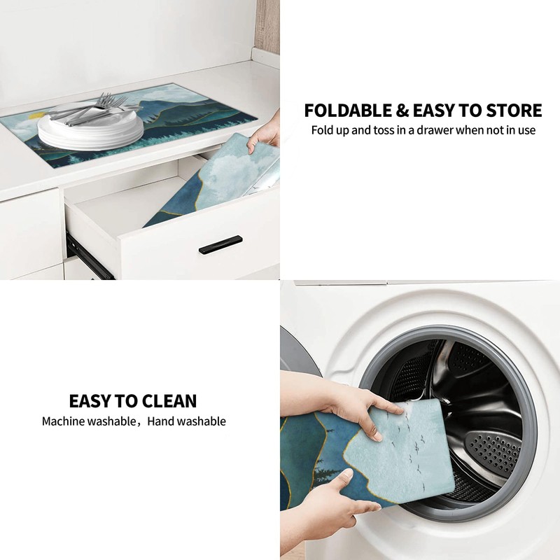 - Kitchen drying mat made of absorbing microfiber, and the middle is made of composite sponge, soft absorbent, non-slip, reversible, reusable