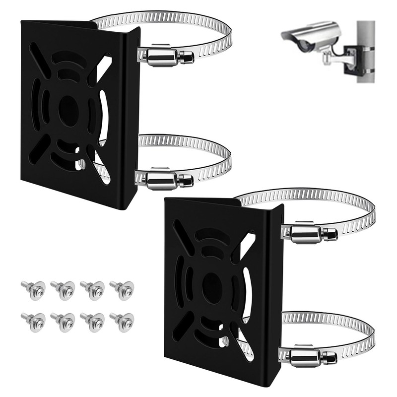 - Upgraded Version: The main body of the security camera bracket is made of thick iron that is washable, rust resistant, lacquer and static removal, and has excellent light resistance and excellent durability. The included band is made of stainless steel, so it is rust resistant and prevents the installation from falling off. Suitable for most security camera installation We have designed and installed 12 mounting holes and 1 larger hole in the center to allow you to install anything. Includes stainless steel screws, easy to install and will not rust