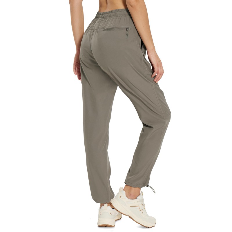 MOURCE Womens Hiking Pants Light Weight Quick Dry Elastic High Waist Cargo Joggers with 4 Zippered Pockets Khaki