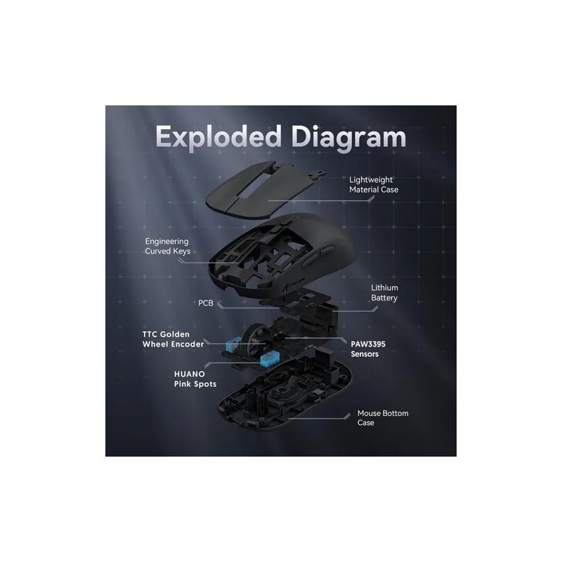 Al utilizar el Micro interruptor de alta gama de punto de polvo de HUANO, cada clic de X6 se caracteriza por un sonido crispy, rebote rápido y gatillo rápido, y su vida útil de 80 millones de veces clic puede garantizar un rendimiento duradero y estable. También está equipado con un encoder de rueda de desplazamiento TTC que puede proporcionar un posicionamiento más preciso. Todo esto le asegura obtener una excelente táctil en cada toque del ratón.