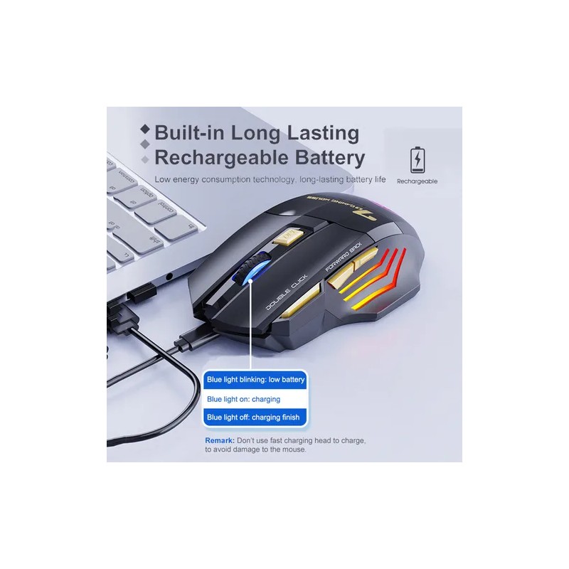 Mouse Gamer 7 Botones Inalámbrico Luz Rgb 3200dpi Recargable