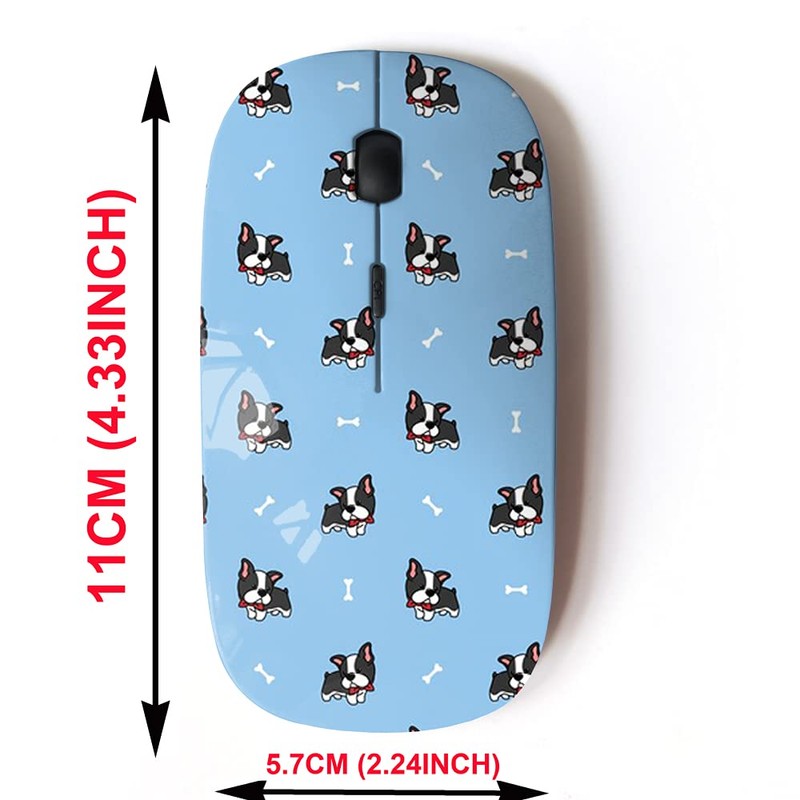 mouse inalámbrico de 2,4 G con bonito diseño de patrón para todos los portátiles y computadoras de computadora con nano receptor, dibujos animados de Boston Terrier Puppy