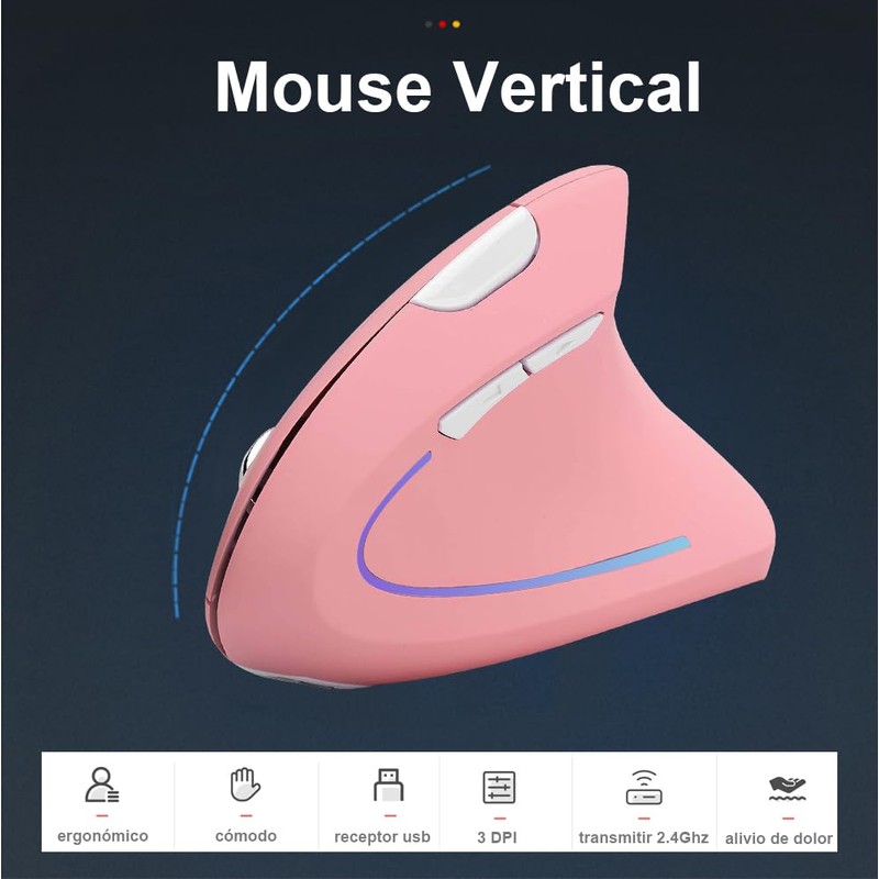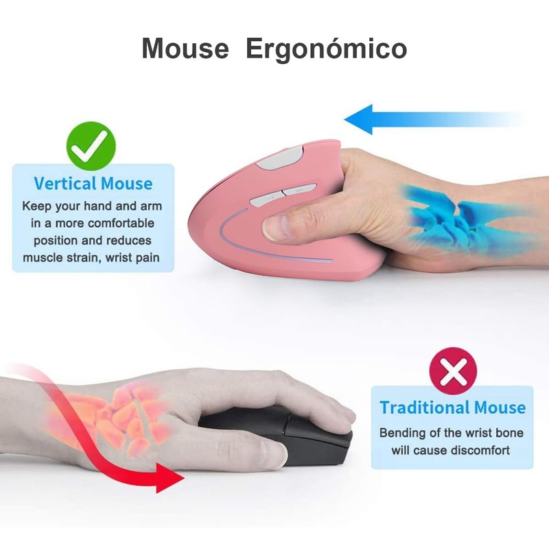 Ratón Vertical Ergonómico, Mouse Inalámbrico Recargable con 3DPIs