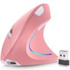 Mouse Inalámbrico Ergonómico Recargable, Mouse Vertical Óptico de 2.4Ghz con 3 DPIs Ajustables, Diseño de 6 Botones con Receptor USB, Compatible con Sistema Windows y Mac(Rosa)