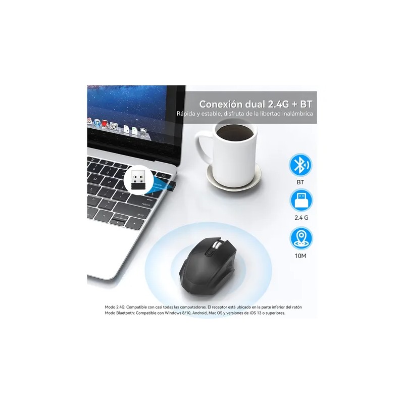 Compatible con receptor USB 2.4 y Bluetooth dual, permite conectar múltiples dispositivos al mismo tiempo y cambiar fácilmente entre ellos. Alta compatibilidad con Windows, Mac, etc.