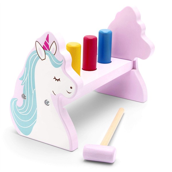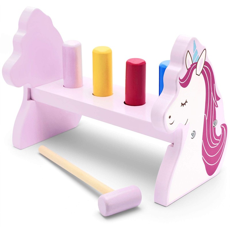 • MADE FROM HIGH-QUALITY MATERIAL! Charming and colourful pound a peg, comes with a mini wooden toy hammer and nailing toy pounding bench to give little one’s entertainment whilst also aiding early development in action and accuracy!