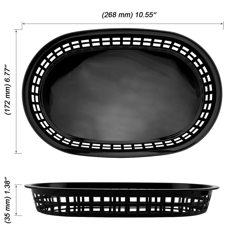 - RELIABLE QUALITY - The oval fast food baskets are made of high quality food grade plastic. So you use them with confidence. They are clean and well made to ensure long-term durability. You can also stack them together, and it won't take up too much space in your cabinets.