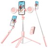Selfie Stick Tripod with Fill Light, Phone Selfie Stick,Durable Stainless Steel Design,Bluetooth Remote Control,and Stable Three-Legged Support for Live Broadcasts,Video Shooting (Pink)