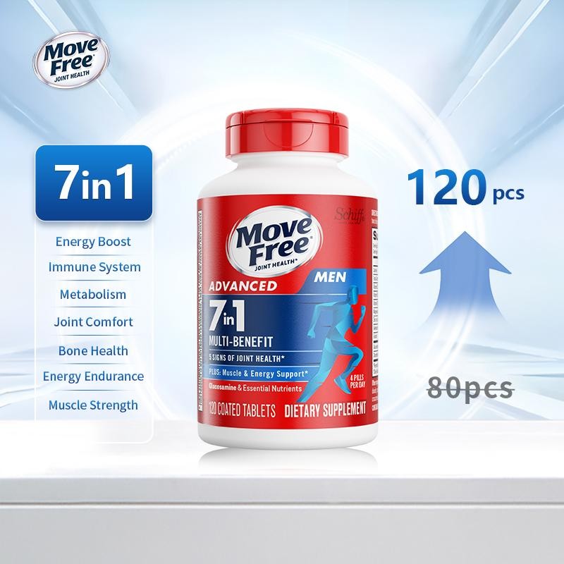 Move Free joint health 7-in-1 Glucosamine Chondroitin Plus Calcium Complex Vitamin Customized for Men with B-Vitamins + Multi-Glucosamine 120 Pills