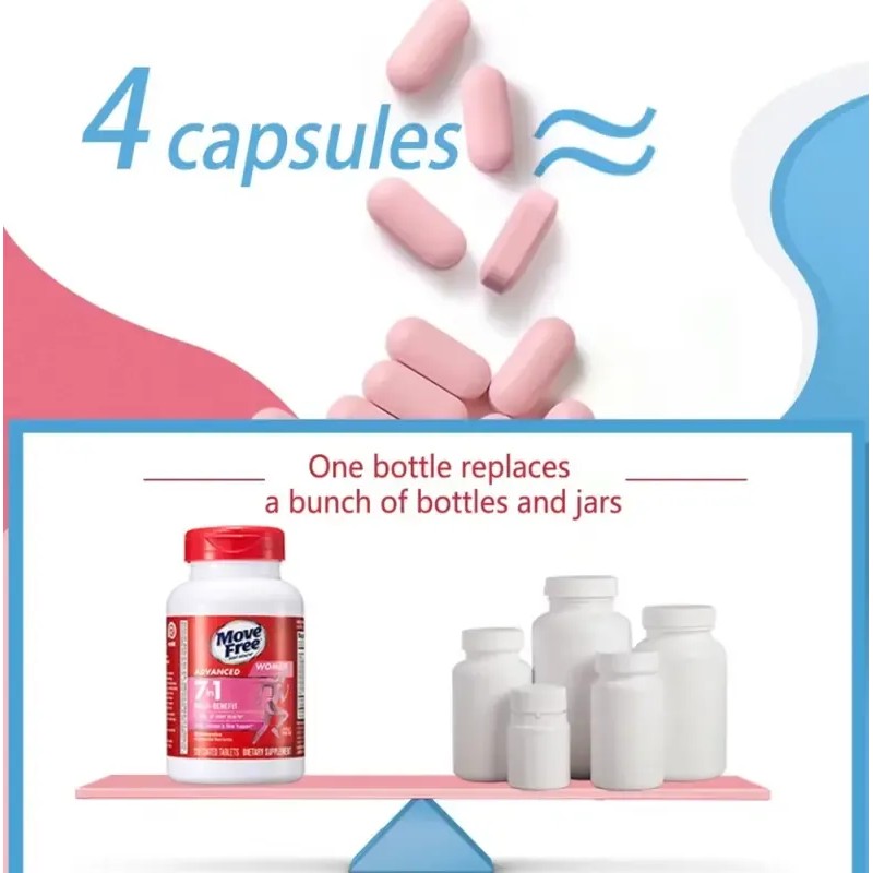 Support your active lifestyle with Move Free ProActive 7-in-1, a comprehensive supplement designed to promote joint flexibility, bone strength, and overall wellness—specifically tailored for women. This advanced formula combines essential joint-supporting nutrients like Glucosamine, Chondroitin, MSM, and Collagen with a blend of powerful Multivitamins, including Vitamins A, C, E, Calcium, and Glucosamine Sulfate.