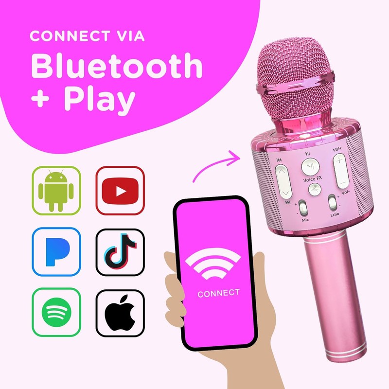 Move2Play, Kids Karaoke Microphone | Includes Bluetooth & 15 Pre-Loaded Nursery Rhymes | Birthday Gift for Girls, Boys & Toddlers | Girls Toy Ages 2, 3, 4-5, 6+ Years Old