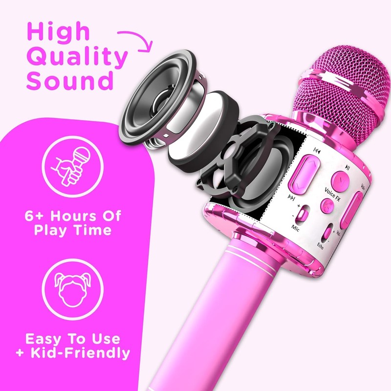 - RECHARGEABLE - Never let the party stop with this microphone's marathon-ready battery! These karaoke mics have a whopping 6 hours of non-stop playtime.