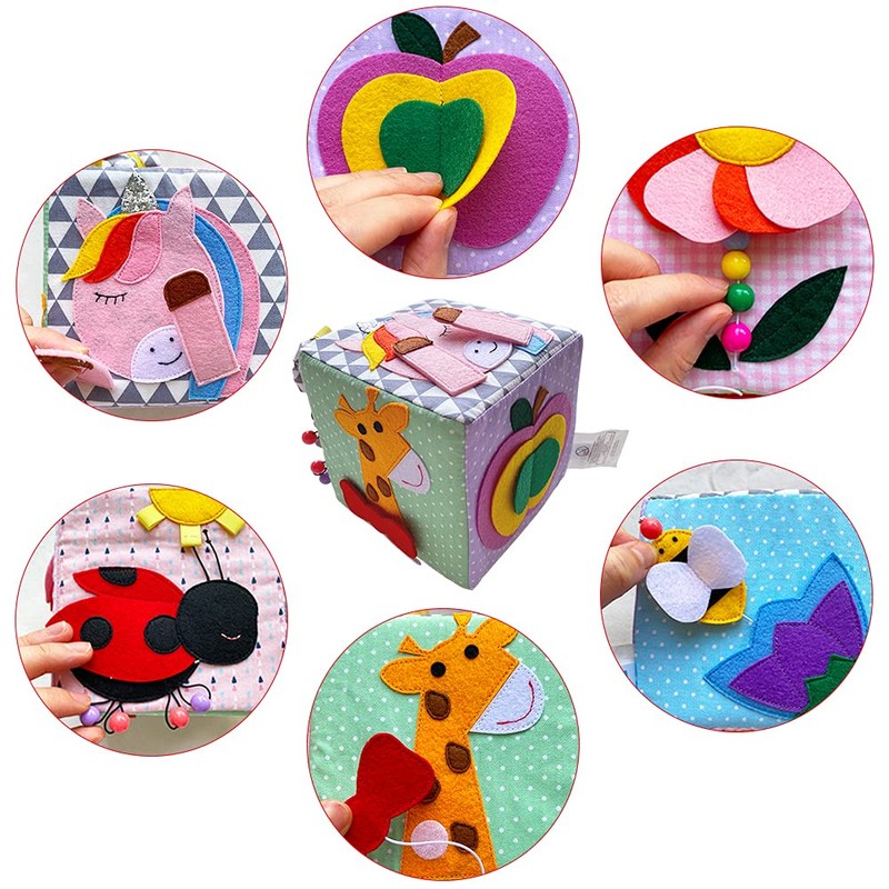 - Carefully designed:Fun themes learning activities board for toddlers ages 3+,Including cartoon animals, plants, life and other different scenes, your baby will definitely love the unique role-playing,hand puppet and hide & seek games from this amazing soft busy board book.