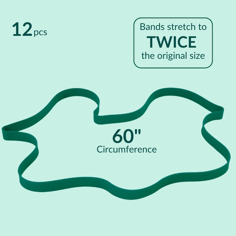 Mover Bands Heavy Duty Silicone Moving Bands - 60" Circumference Extra Long Thick Furniture Mover Straps | 5-Year Long Lasting Durable Elastic Bands Reusable Pallet/Blanket/Trash Can Bands | Eco-Friendly & Unbreakable Design, 12 Pack, Green