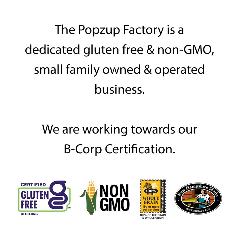 - Popzup Popcorn is non-GMO, gluten free, whole grain & grown on a 4th generation farm in PA (farm video on our website).