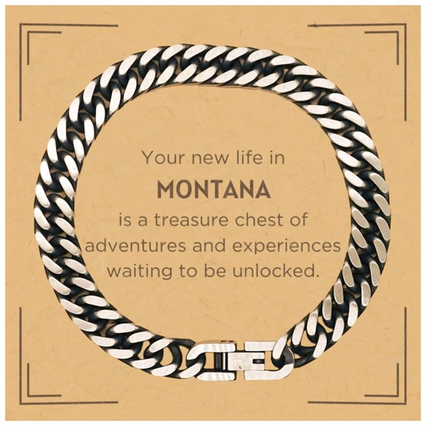 Moving to Montana Gifts, Your new life in Montana, Long Distance Montana Christmas Cuban Link Chain Bracelet For Men, Women, Friends, Coworkers