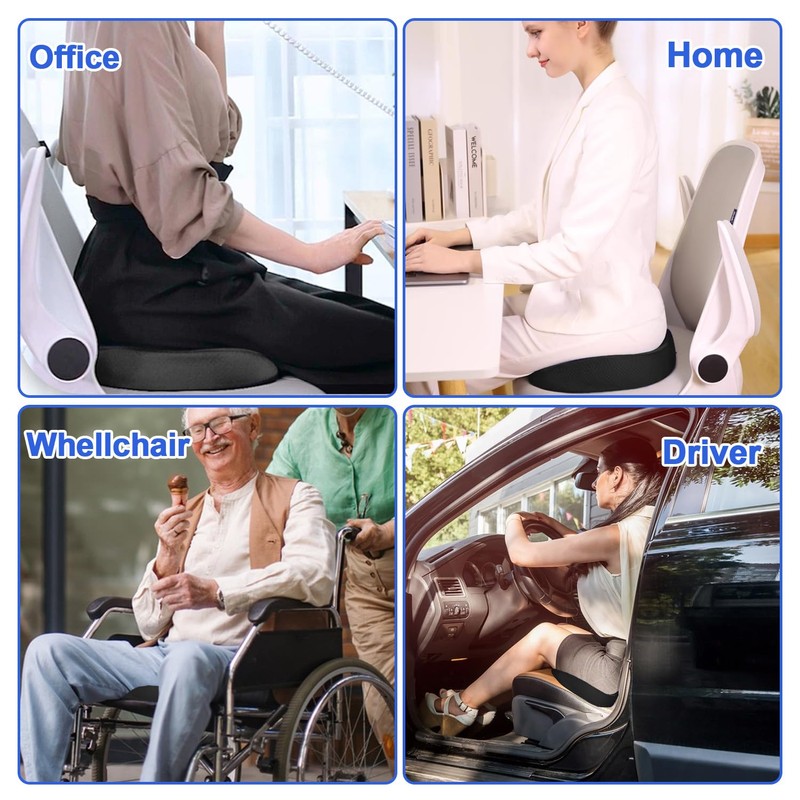 • 【Donut Pillow for Tailbone Pain Relief】Our hemorrhoid cushion with a scientific central hole is developed based on anatomy. Provides you with the necessary additional support to maintain proper posture and the natural curvature of the spine. By evenly distributing your body weight, it reduces pressure on your back and provides relief for lower back, hemorrhoids, sciatica, and coccyx/tailbone pain.