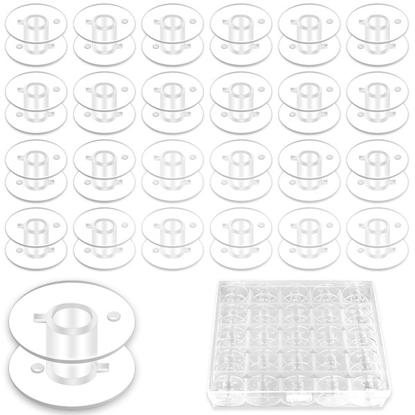 - ✅【Packaging Includes】This set includes 25 transparent sewing machine bobbins and 1 transparent plastic storage box for easy storage and organization.