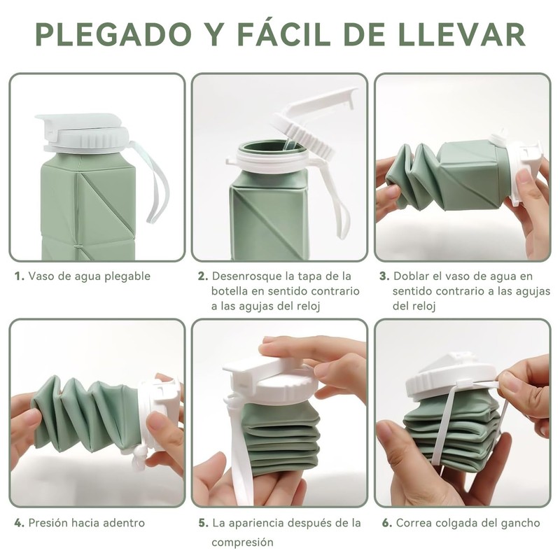 - Botella de Agua Plegable con Pajita: Al estar plegada, esta botella de agua de 620 ml es solo 6 *6.5 *6.5cm de tamaño y 122g de peso. Es conveniente para usted llevarlo y usarlo en viajes, campamentos, ciclismo, caminatas y otros escenarios. La botella viene con una pajita para facilitar la bebida