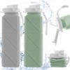 MOYAC 2 Pcs Botella de Agua Plegable, 620ML Botella Blandas Portátil de Silicona, con Pajita, sin PBA, Antifugas, Anticaídas, Facil de Transporter, para Viajes, Gimnasio, Correr, Acampar (Verde/Gris)