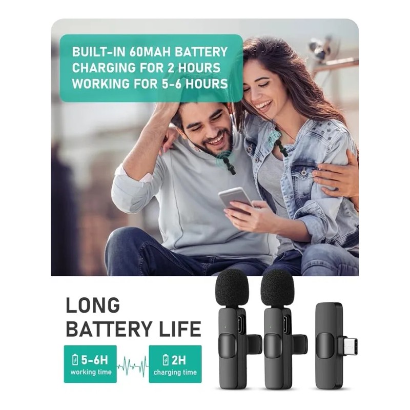 - Micrófono inalámbrico con tecnología Bluetooth 5.0 para conexión rápida y estable.
