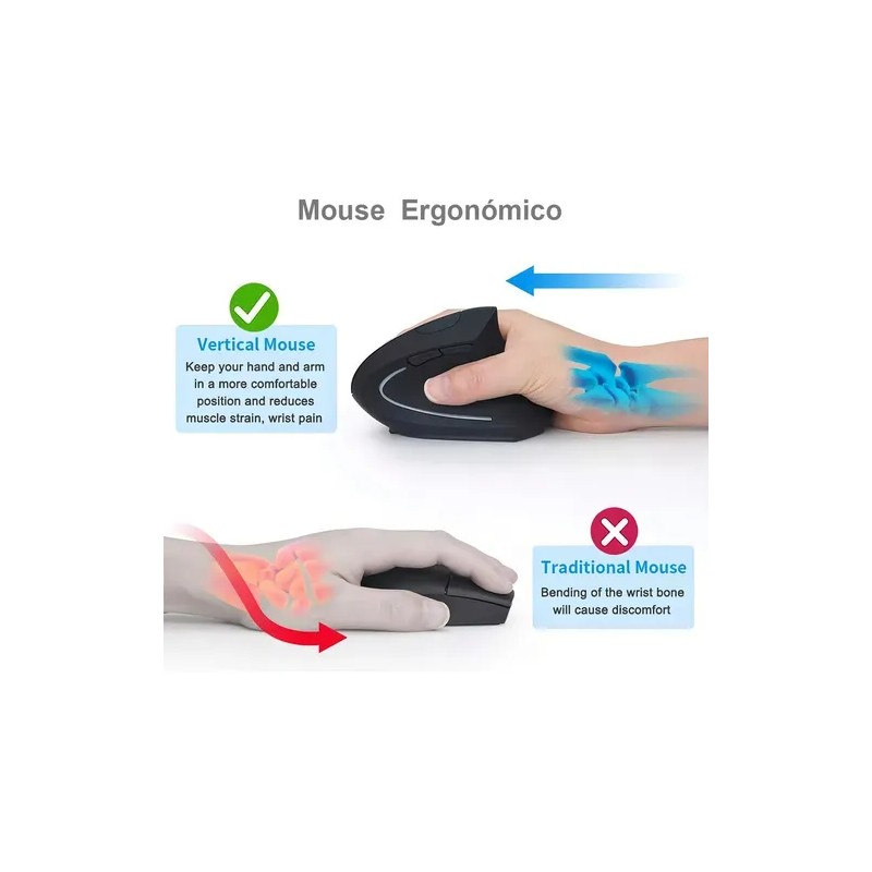 ERGONÓMICO Y CÓMODO: Este mouse vertical tiene una estructura ergonómica, amigable a la muñeca, protegiéndola del dolor por largo tiempo de mantener la postura de operar vía el mouse. La superficie viene con material mate, muy cómodo al tacto.