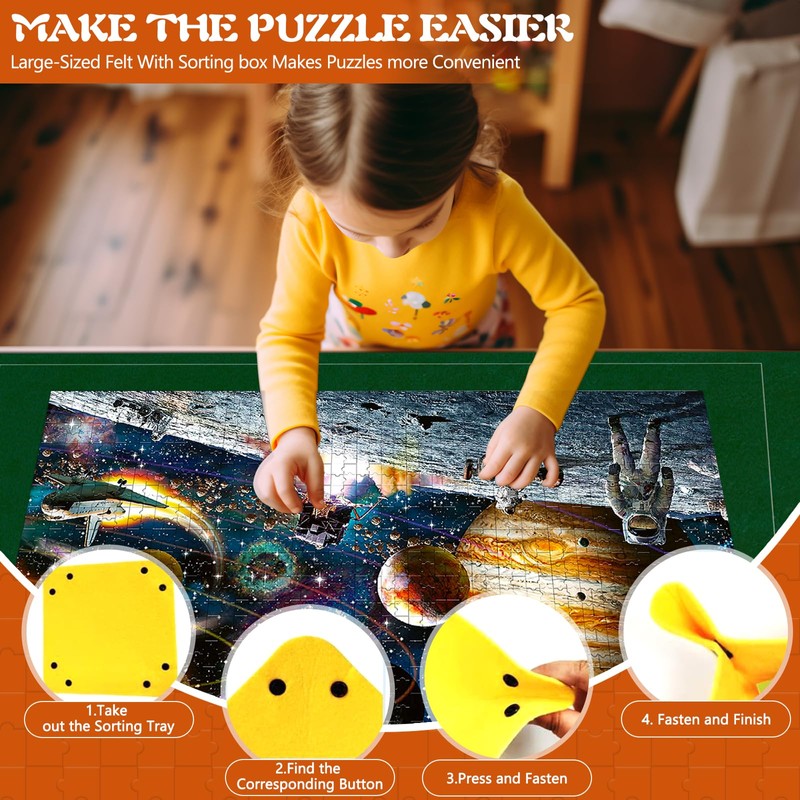 - Quality product: the large capacity puzzle mat is made of non-slip and safe felt material, which can fix the position of the puzzle and prevent it from slipping or falling apart. It is the best accessory for puzzle games. Easy to start a puzzle game: the jigsaw mat comes with 6 colourful puzzle sorters to organise the puzzle pieces into categories for easy management.
