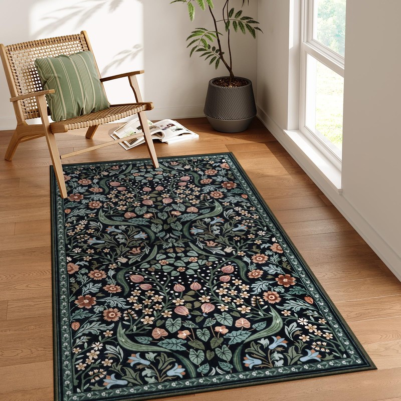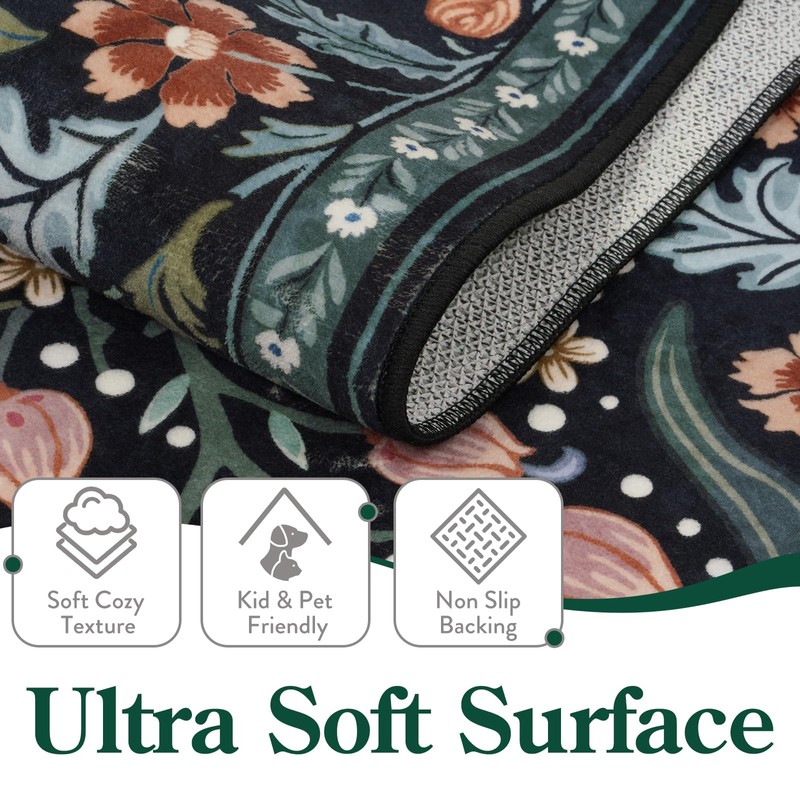 Moynesa Floral Botanical Area Rug Washable Non Slip Vibrant Blossom Floral Rug Ultra Thin Stain Resistant Indoor Floor Throw Rug