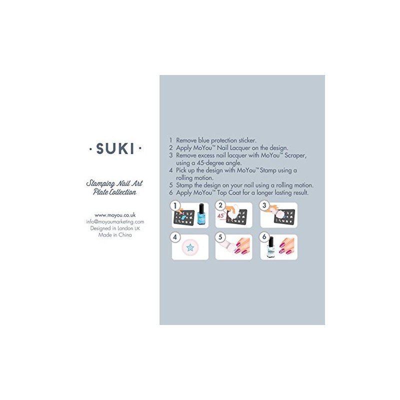 With MoYou-London stencils you can conjure up the most beautiful designs to your finger nails. Sharp motifs are the highlight on natural or artificial nails and finish off any design with superb precision. Let yourself be enchanted by the wide range of wonderful ruler designs in different sizes. MoYou London stencils are equipped with a premium vinyl layer that ensure ease of use. Each stamping plate is also a in a lovingly printed for extra protection. All designs are embossed onto the stencil and it comes complete with a protective film covering in place needs to be removed before you use. If cared for properly are the heavy duty metal Manufactured separate dies virtually wear-free and can of course be reused numerous times