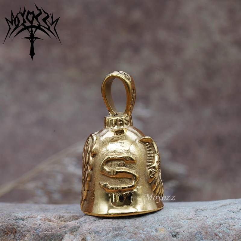 MOYOZZ Angel Wing Knight Bell Letters USA Motorcycle Bike Riding Guardian Bell - Never Ride Faster Than Your Angel Can Fly (Gold)