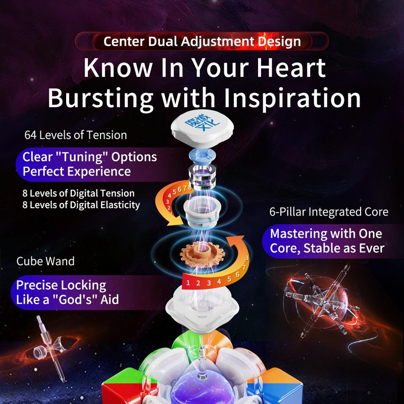 • cubeta de velocidad MagLev de alta energía: innovadora levitación magnética, reduce la resistencia y proporciona un beneficio óptimo para la velocidad de cubeta. Aprovechando la fuerza repulsiva entre imanes, reduce la fricción para una resolución más suave y silenciosa que nunca. Además, puedes ajustar el nivel de elasticidad girando el tornillo debajo de las piezas centrales.