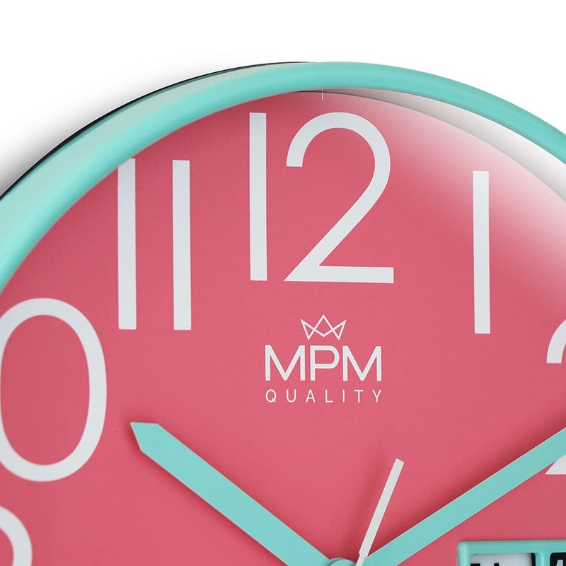 MPM Quality Design Wall Clock, Turquoise/Pink, Date Display, Precise Quartz Movement, Diameter 305 mm, Modern Wall Decoration for Living Room, Bedroom or Office