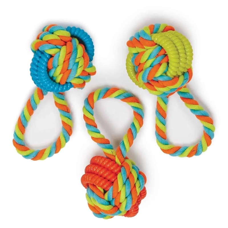 MPP Durable 8 Inch Interactive Dog Rope Tug Toy Dual Material Teeth Cleaning (Full Set - All 3 Toys)