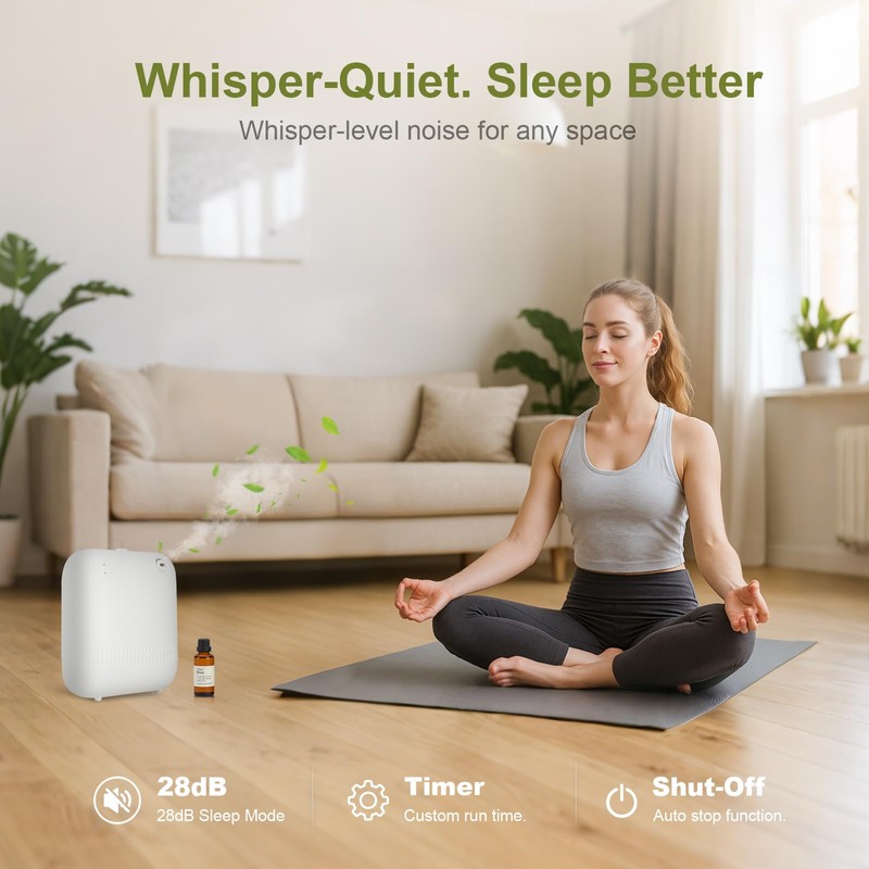 - Whisper-Quiet & Versatile for Any Space – Built with noise-reduction technology, this oil diffuser waterless runs quietly enough for both home and commercial use. Ideal for a wide range of spaces, living rooms, bathrooms, hallways, waiting rooms, offices, reception areas, hotel lobbies, guest rooms, gyms, yoga studios, spa, salons, massage rooms, restaurants, cafés, airport lounges, movie theater lobbies, retail stores, supermarkets, showrooms